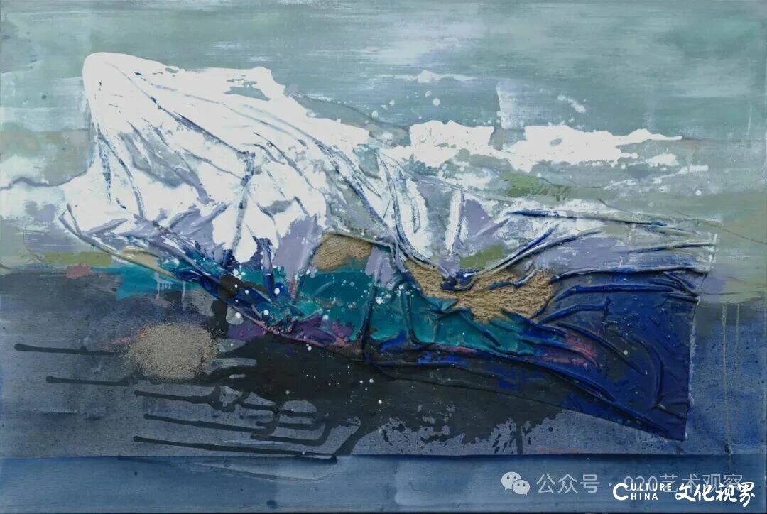 丁一林回忆,当年招收张振江读博时,便希望其“在油画领域融入材料特性,探索新的艺术路径”。而从本次“游山记”系列作品来看,张振江不仅实现了这一目标,更将生活感悟与本土文化深度融入创作:“他在新疆喀什的支教经历,为作品注入了情感与精神的厚度——那些画面中的雪山、荒原,不是简单的风景再现,而是对西部大地变迁的观察,对本土文化的尊重与景仰。”