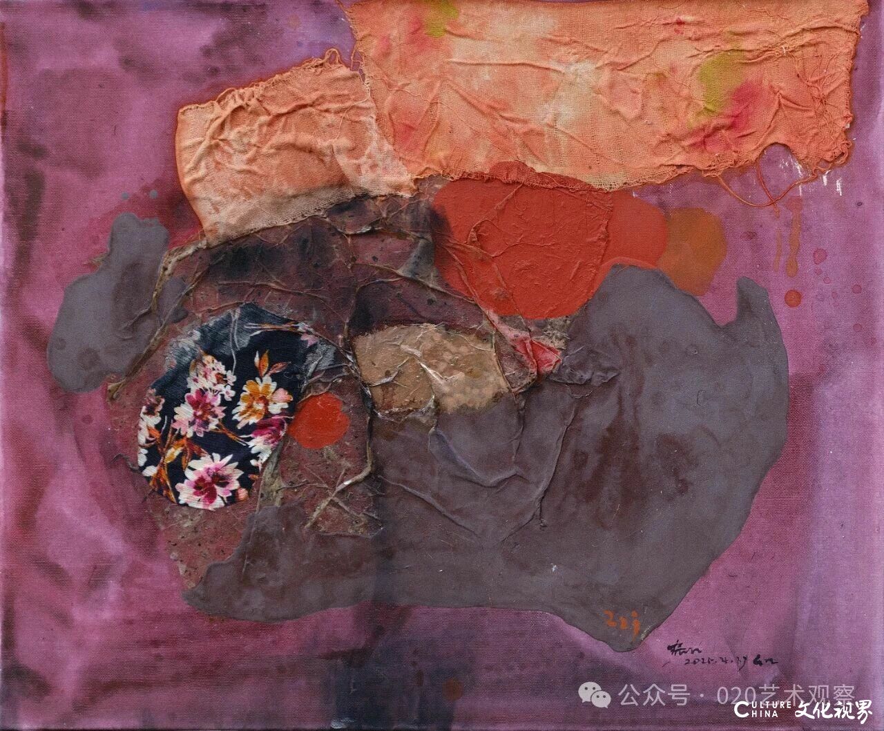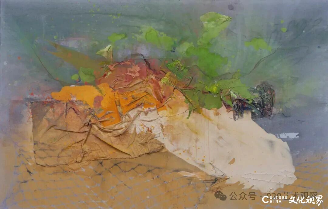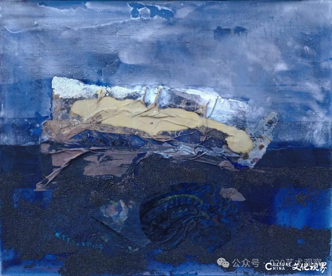 李公明认为,“综合材料”的表述过于侧重“技术层面的组合”,而“物料”更能体现“材质的精神属性”:“张振江作品中的报纸、布料、沙土,不是简单的‘材料拼接’,而是‘物料的叙事’——比如他将布料贴在画面上,遮盖了底层的痕迹,这种‘遮盖’本身就是一种情感表达,可能隐藏着他对某件事、某种情绪的回应。观众不应只看‘表面的物料’,更应思考‘物料背后的隐藏’。”