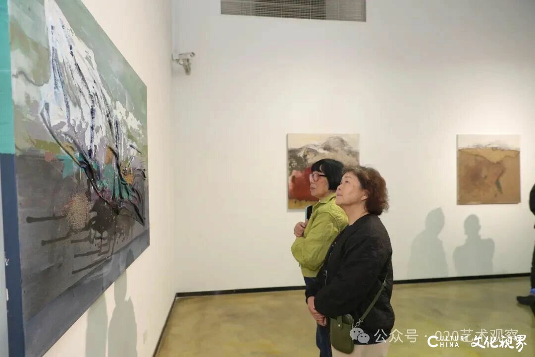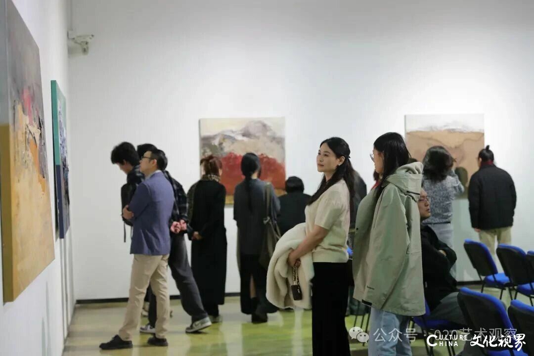 本次展览策展人荣剑在开场中透露,展览主题“游山记”由张振江本人拟定,荣剑评价其“看似通俗如游记,实则精准界定了展览的精神境界”。据介绍,张振江近年长期在新疆喀什参与艺术支教,其作品中大量呈现的高山、荒原意象,均源自对西部大地的实地观察与情感共鸣;同时,作为兼具广州美术学院与中央美术学院学习经历的艺术家,张振江从传统油画出发,逐步探索综合材料创作,形成了“以材质叙事、以色彩抒情”的个人风格。