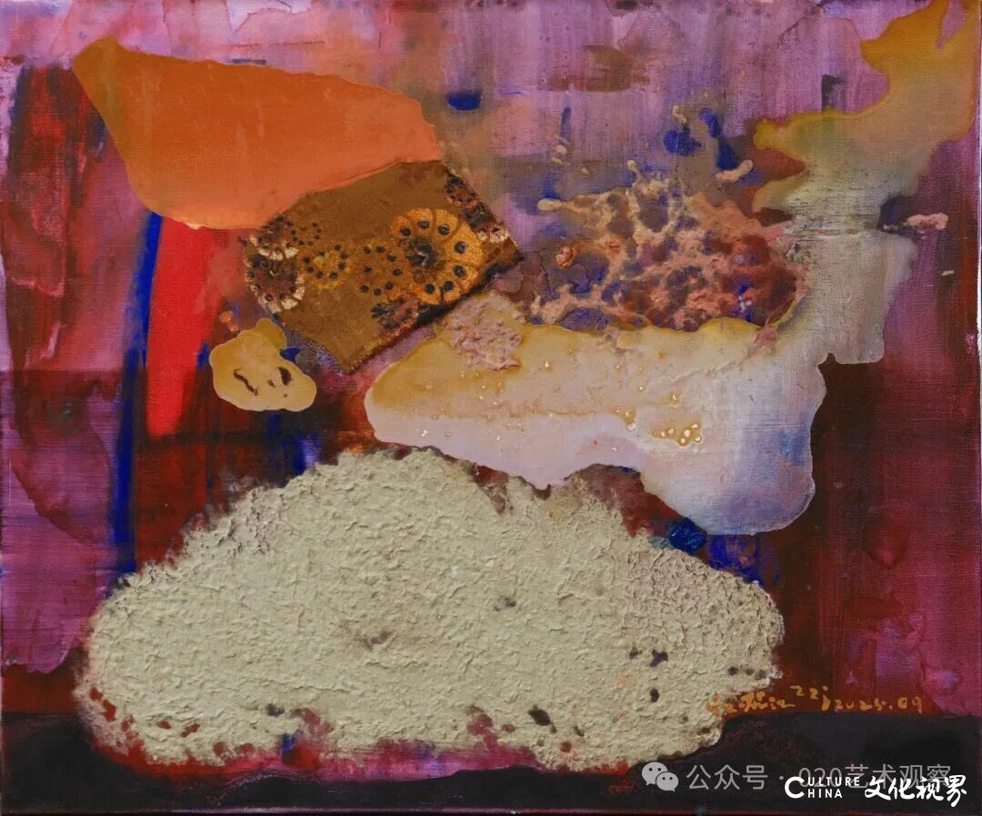 葛玉君还提到中央美术学院的教学传统:“詹建俊先生曾说,‘能画好抽象的艺术家,往往有扎实的写实功底’。张振江正是如此——他早年的写实绘画训练,让他在抽象表达中始终有清晰的逻辑,能从复杂的材料中提炼出精准的视觉语言,这是很多年轻艺术家缺乏的能力。”